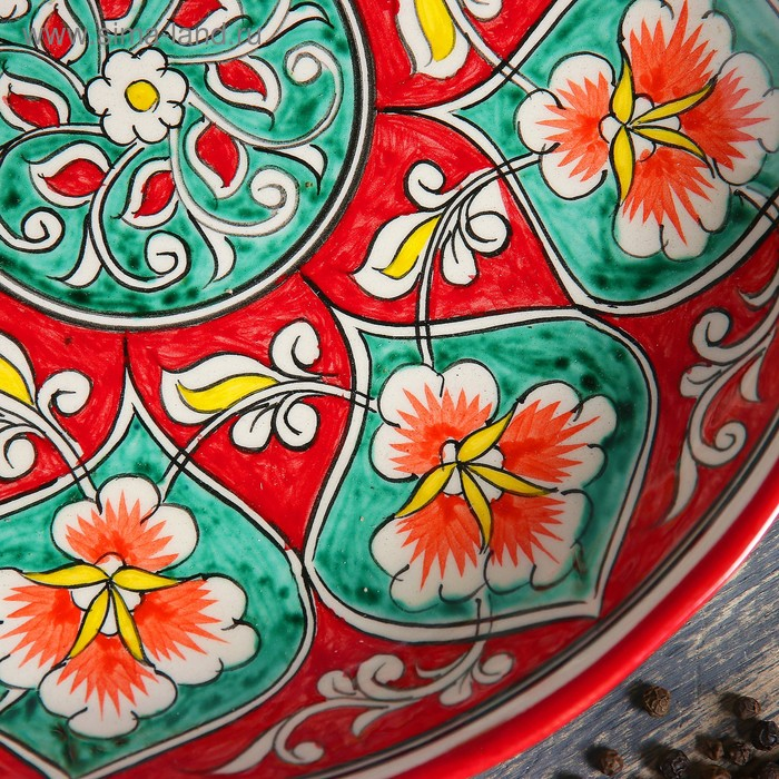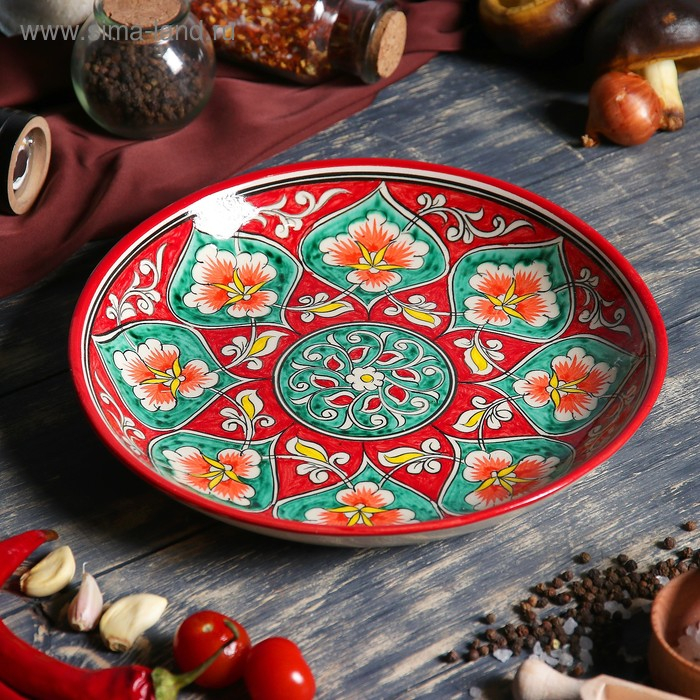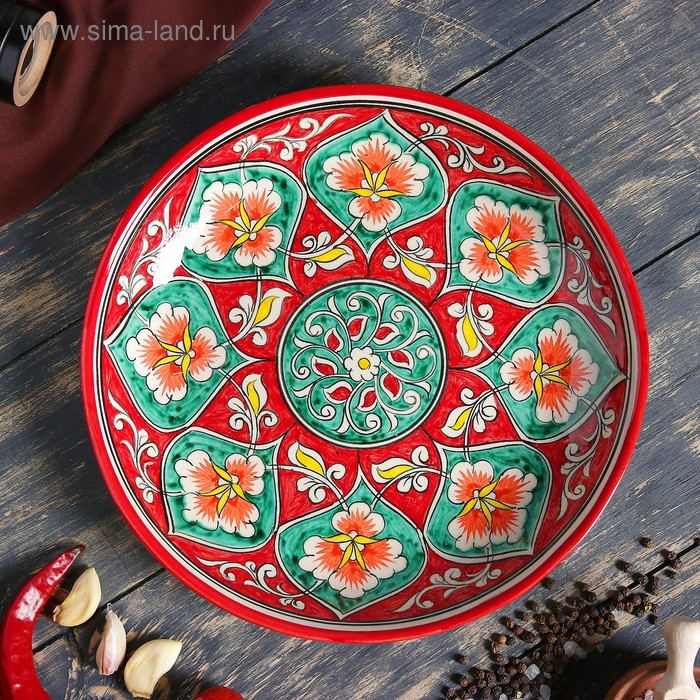 Ляган Риштанская Керамика "Цветы", 25 см, красный