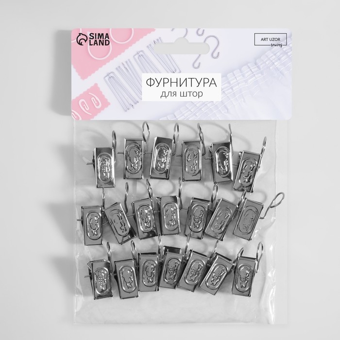 Зажим для штор, 32 × 11 мм, 20 шт, цвет серебряный