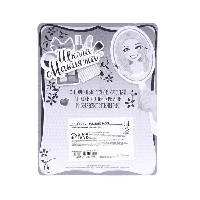 Детская косметика «Школа макияжа» позволит ребёнку устраивать эксперименты со своим стилем. Набор поможет девочке подобрать оптимальные варианты для вечерних и дневных образов. Косметика без труда смывается водой или с помощью ватного диска и безопасна для детской кожи.