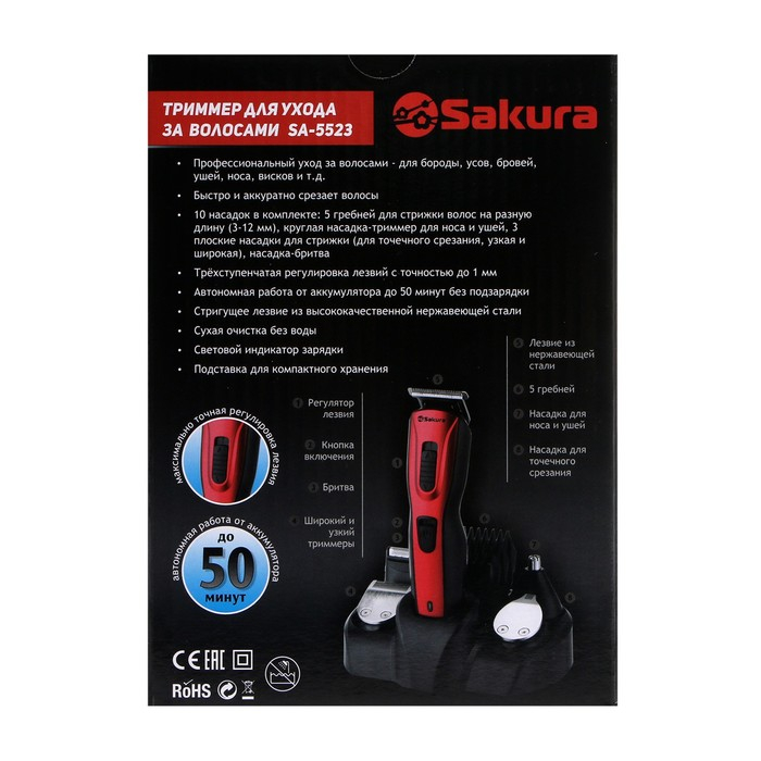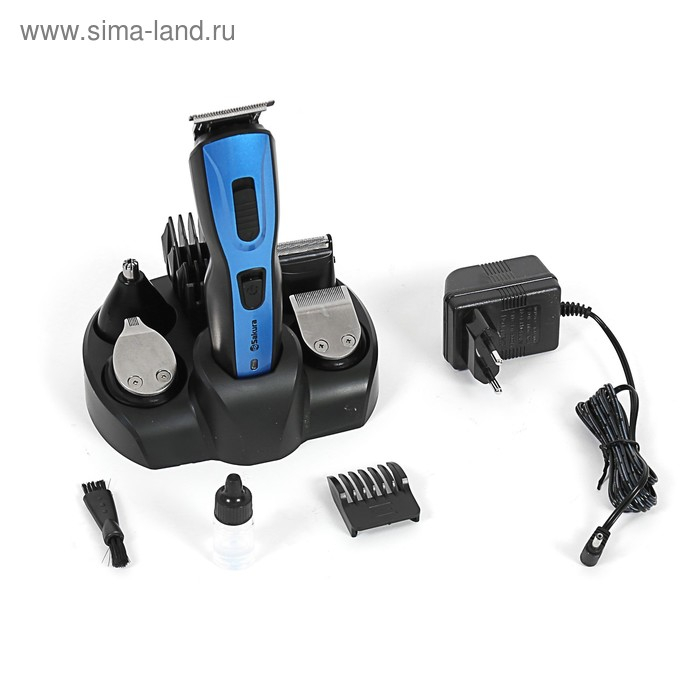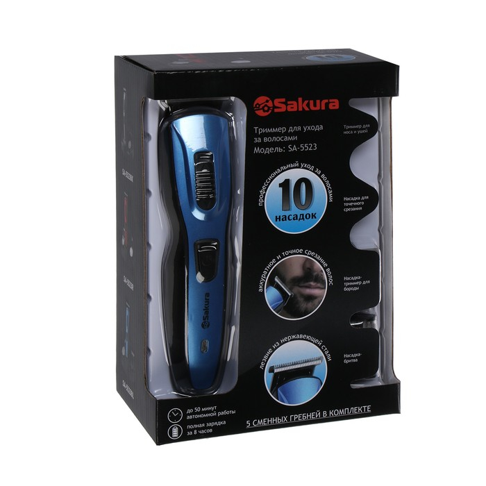 Триммер для волос Sakura SA-5523BL, 10 насадок, АКБ, чёрно-синий