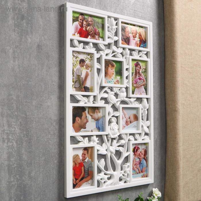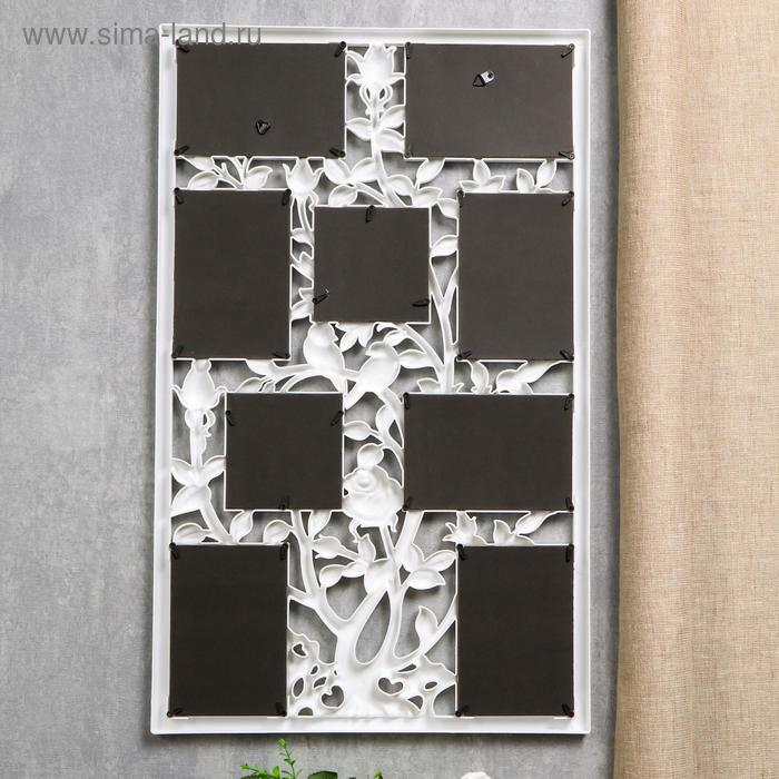 Фоторамка пластик на 9 фото 10х10, 10х15 см "Птицы на розовом кусте" белая 65х40,5 см