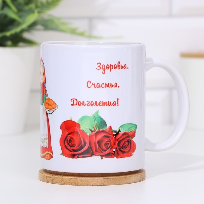 Кружка изготовлена из керамики. Рисунок нанесён методом сублимации, при котором краска проникает в верхний слой изделия, поэтому изображение получается стойким.