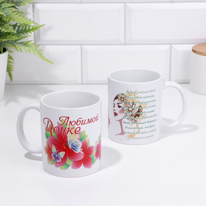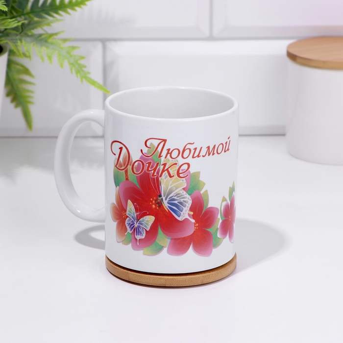 Кружка сублимация "Любимой дочке" Цветы, c нанесением