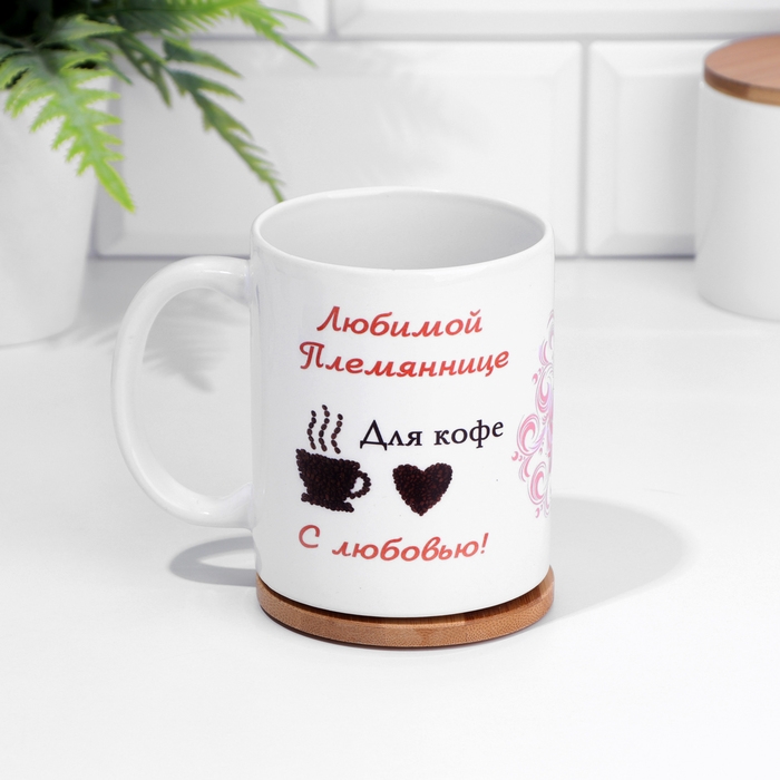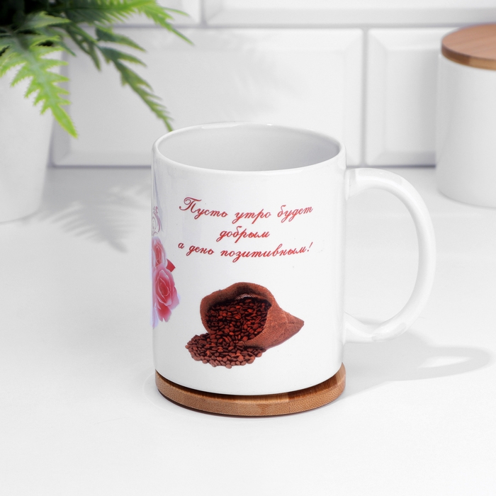 Кружка изготовлена из керамики. Рисунок нанесён методом сублимации, при котором краска проникает в верхний слой изделия, поэтому изображение получается стойким.