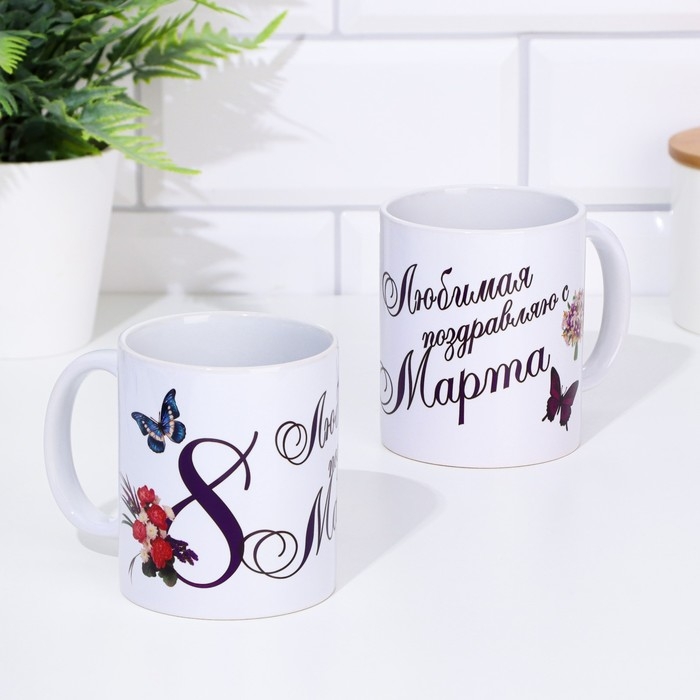 Кружка сублимация "Любимая, поздравляю с 8 марта", c нанесением
