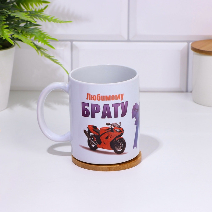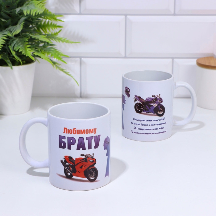 Кружка сублимация "Любимому брату" мотоцикл, c нанесением