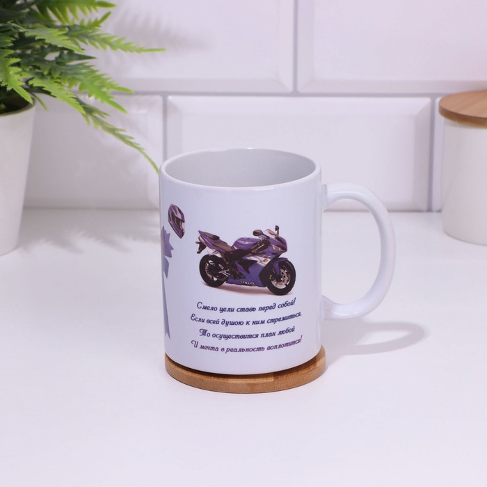 Кружка изготовлена из керамики. Рисунок нанесён методом сублимации, при котором краска проникает в верхний слой изделия, поэтому изображение получается стойким.