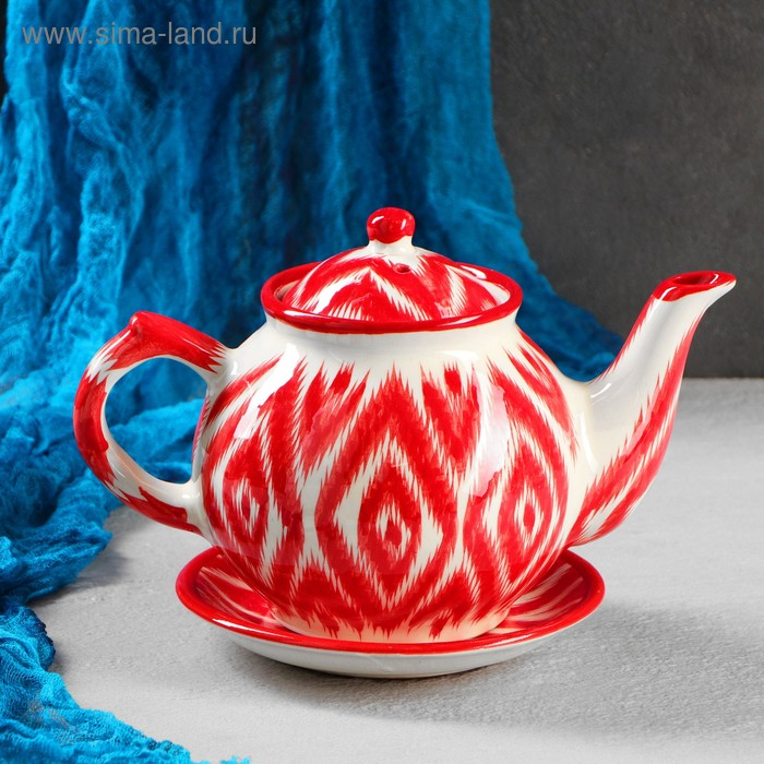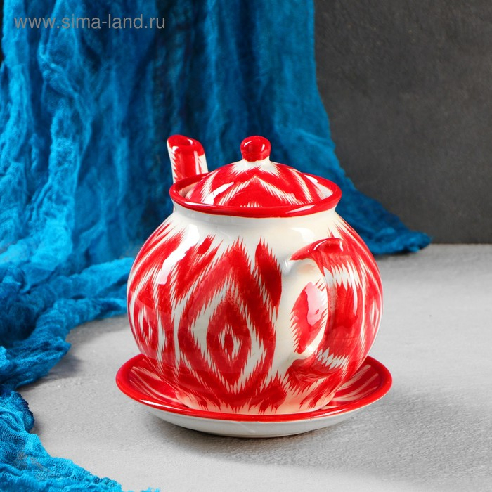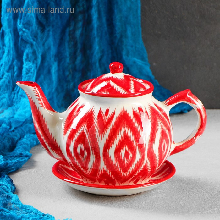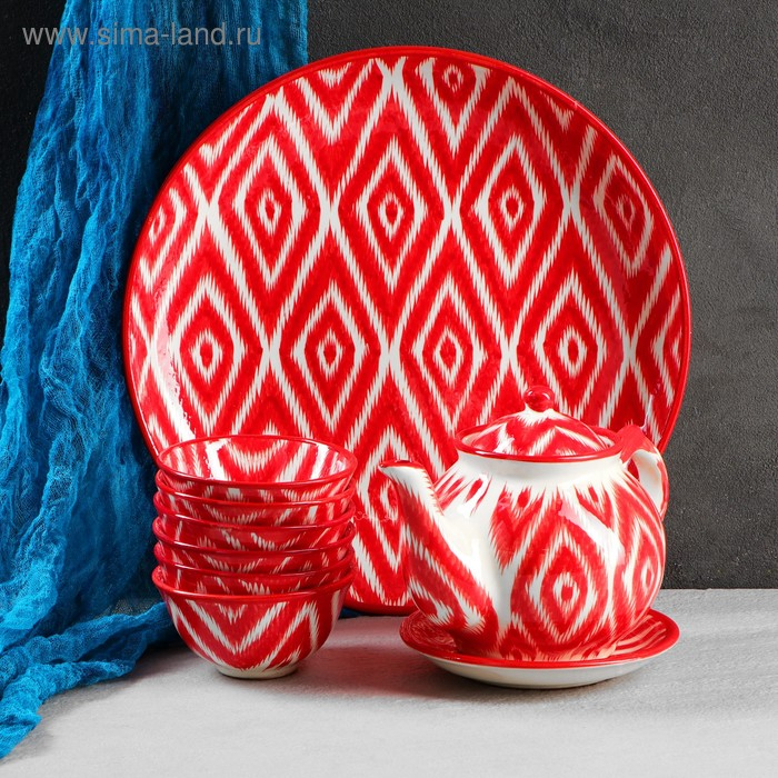 Набор чайный Риштанская керамика "Атлас", 9 предметов (чайник-0,8л,пиалы-0,5/0,3л)