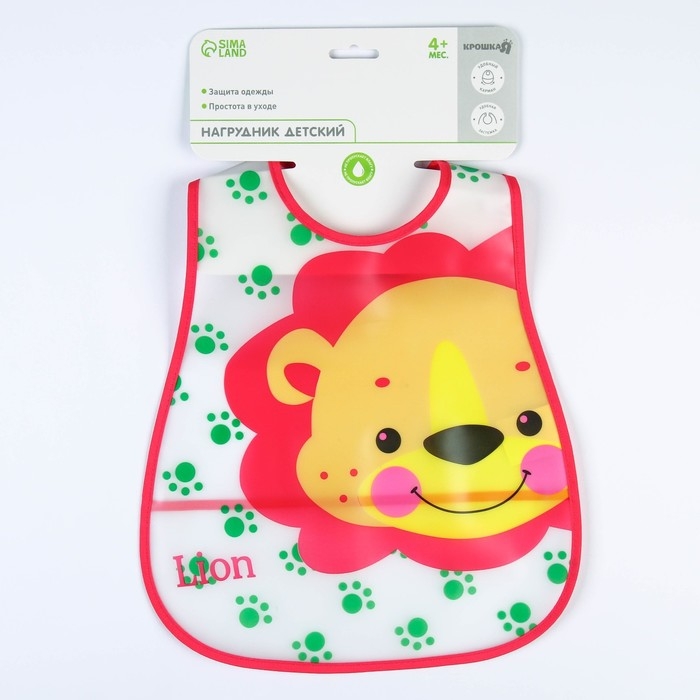 Нагрудник непромокаемый из клеёнки с карманом «Львёнок», на липучке