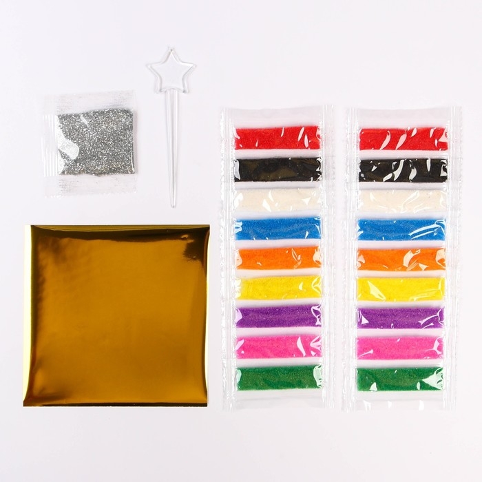 Фреска из песка — увлекательный вид творчества, который понравится любому малышу. Ведь раскрашивать любимых героев с помощью цветных песчинок так здорово! Засыпайте картинку постепенно и не забывайте равномерно распределять мелкие блёстки по клеевому слою, чтобы картина сияла. Или засыпьте только некоторые части фрески, придав картинке фактуру. Специальные контуры не дадут разноцветным частичкам перемешаться и помогут создать сверкающий шедевр. Клеевая основа защищена специальным слоем бумаги с прорезями. Отделяйте верхний цветной слой с помощью стеки и засыпайте песком подходящего оттенка.