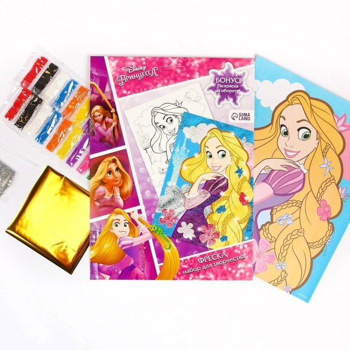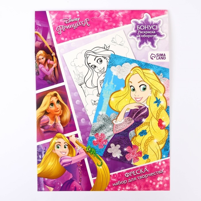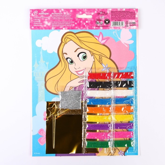 Набор для творчества: фреска песком с блёстками (9 цветов), "Рапунцель", Принцессы