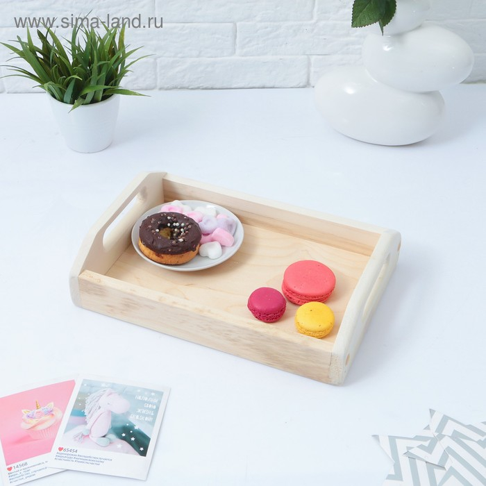 Поднос деревянный для завтрака прямой №1, МАССИВ, 30х20х7см