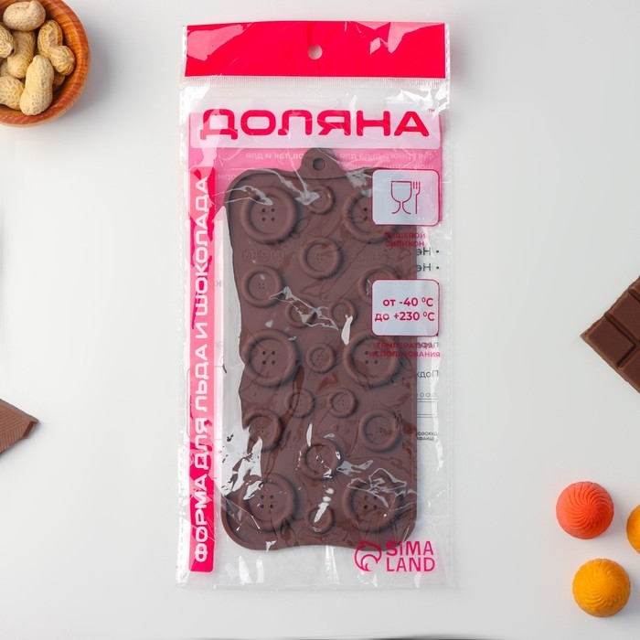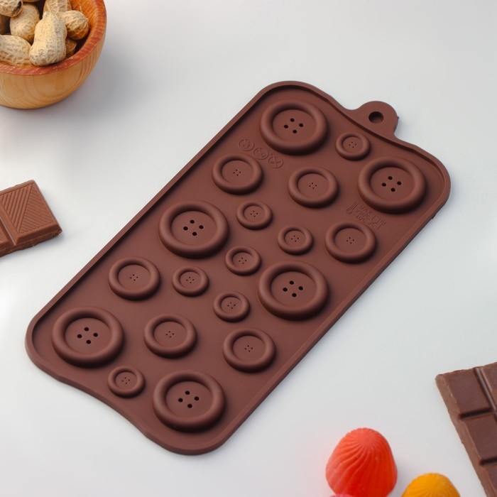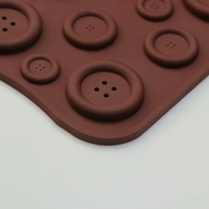 Форма для кондитерских украшений Доляна «Пуговки», силикон, 20,5×10 см, 19 ячеек, цвет коричневый