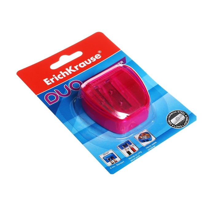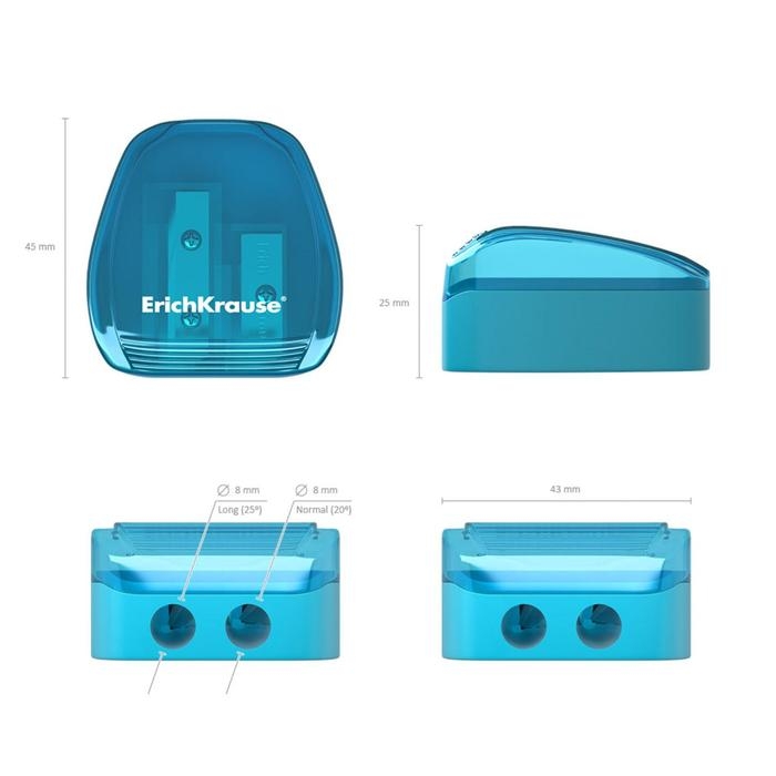 Точилка 2 отверстия ErichKrause Duo, с контейнером, отверстия диаметром 8 мм, в блистере, микс