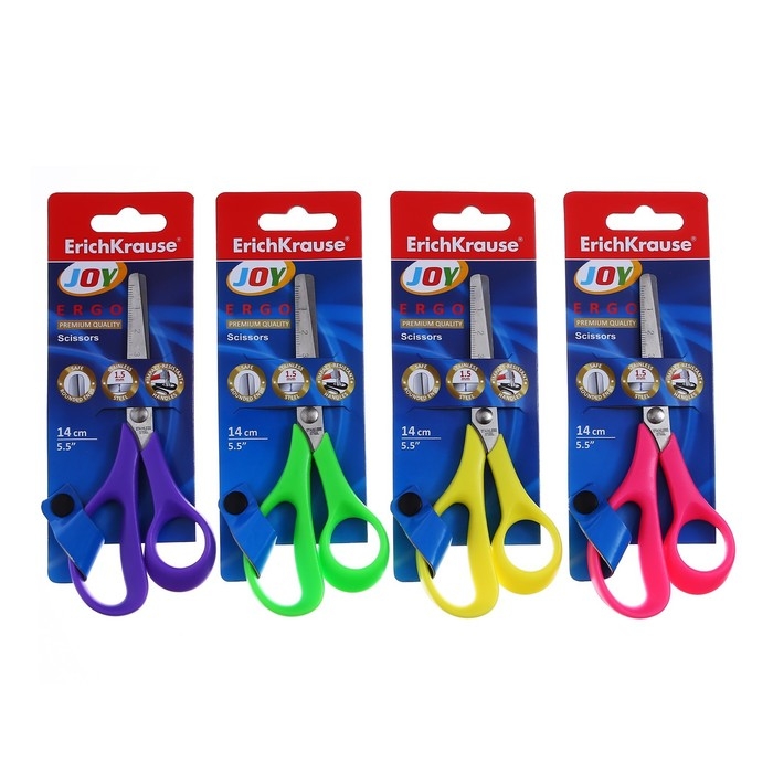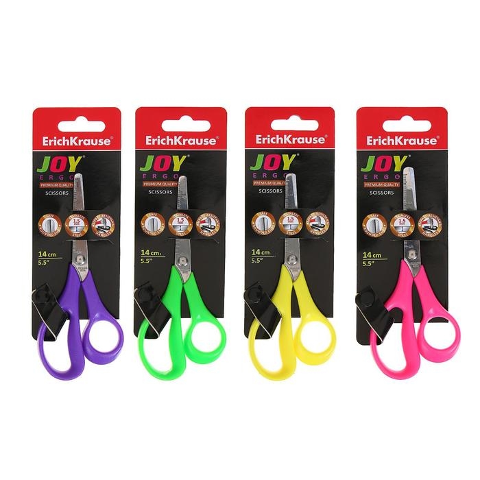 Ножницы детские 14 см, ErichKrause Joy Ergo, с закруглёнными концами лезвий и линейкой, МИКС