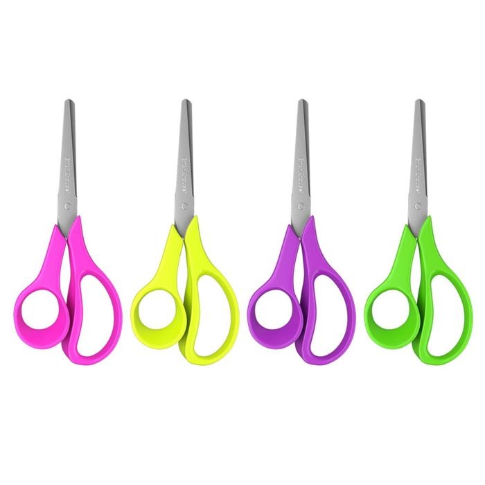 Ножницы с лезвиями из высококачественной нержавеющей стали с безопасными закругленными концами лезвий и линейкой, обеспечивающей точность резки. Не ржавеют. Ручки эргономичной формы из ударопрочного пластика. Товар поставляется в нескольких вариантах цвета/дизайна без возможности выбора.
