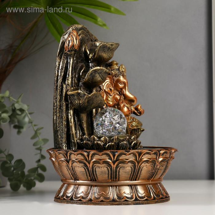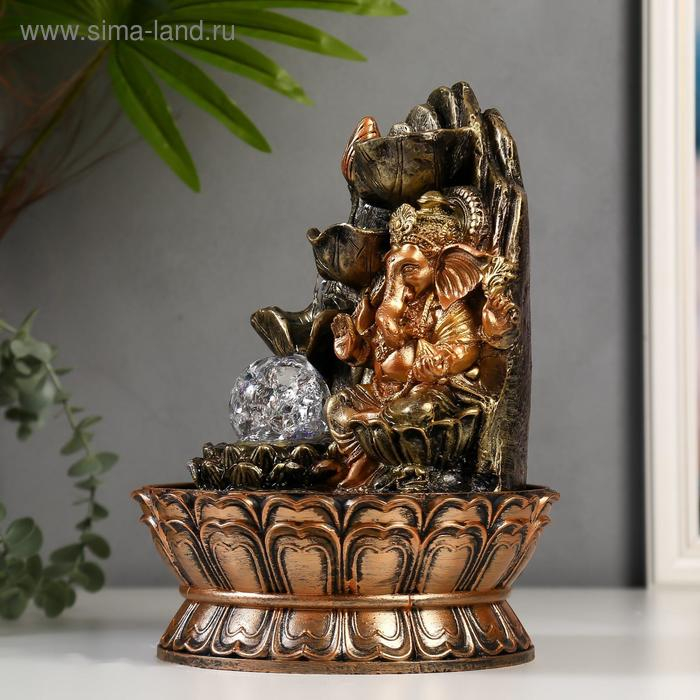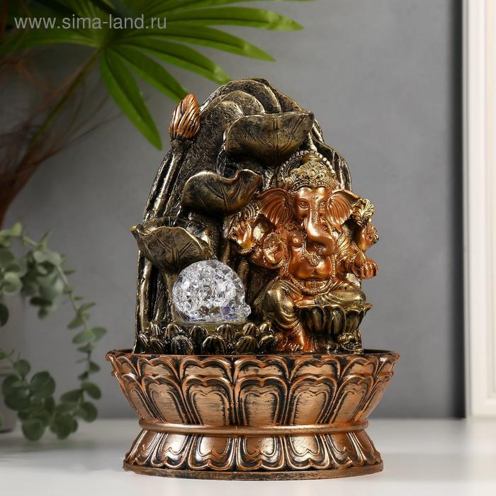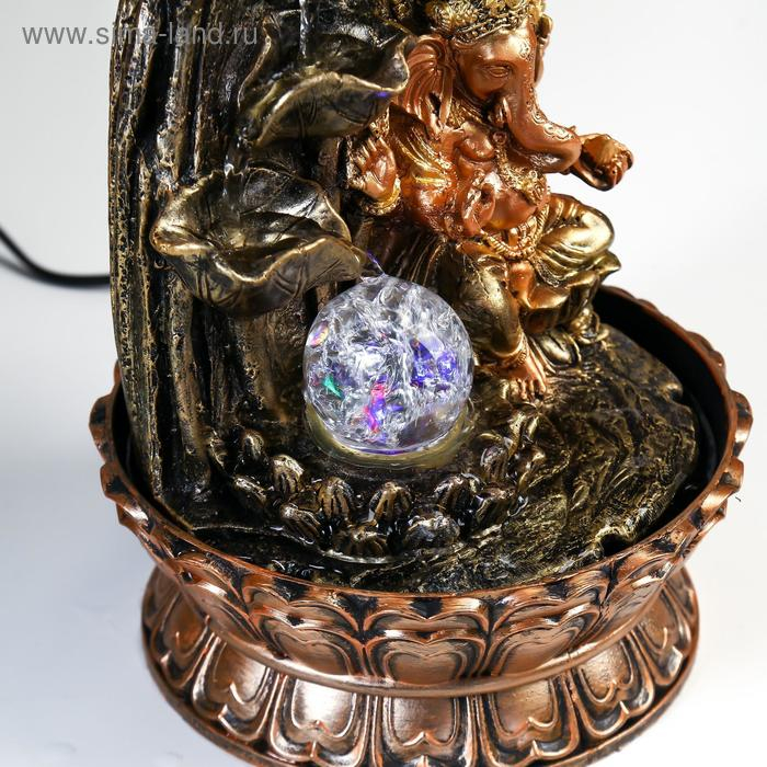 Фонтан настольный от сети, подсветка "Ганеша у скалы с лотосами" 28х20х20 см