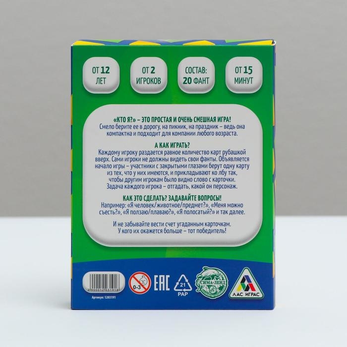 «Кто я?» — это простая и забавная игра! Смело берите её в дорогу, на пикник или праздник: она компактна и подходит для компании любого возраста.