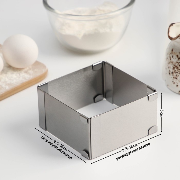 Форма для выкладки и выпечки с регулировкой размера, 9,5 -16 см, цвет серебристый
