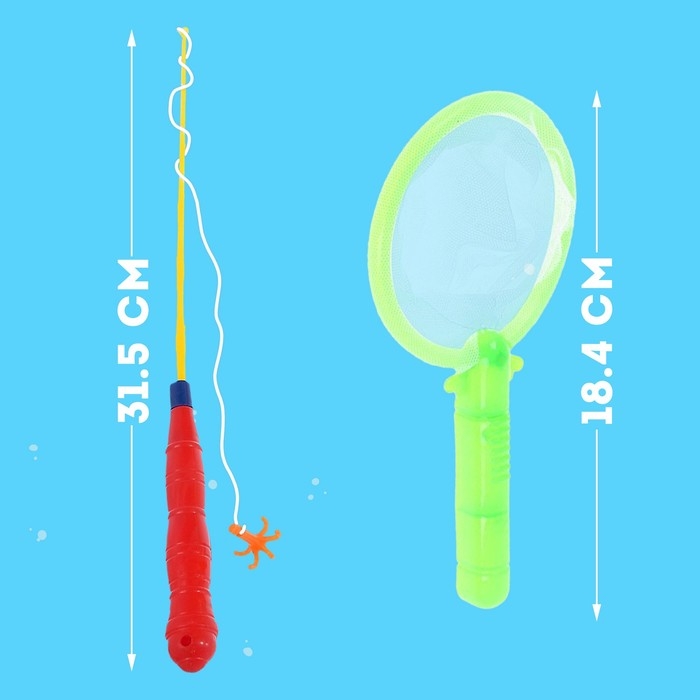 Яркие рыбки и удобная магнитная удочка сделают купание увлекательным развлечением.