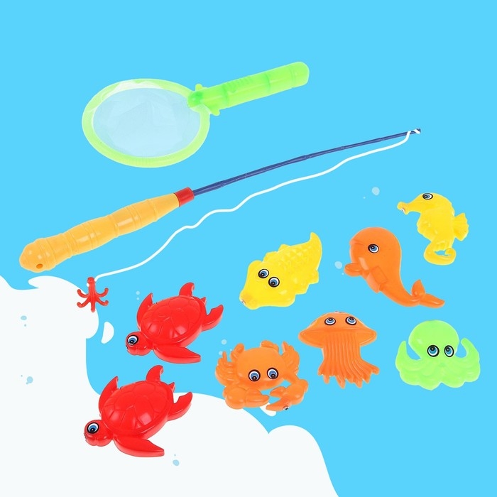 Магнитная рыбалка для детей «Морские жители», 10 предметов: 1 удочка, 1 сачок, 8 игрушек, цвета МИКС