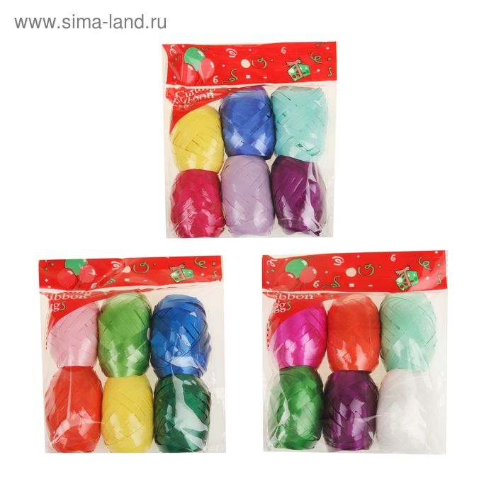 Лента упаковочная глянцевая, ассорти 0,5 см х 3 м (набор 6 цветов.)