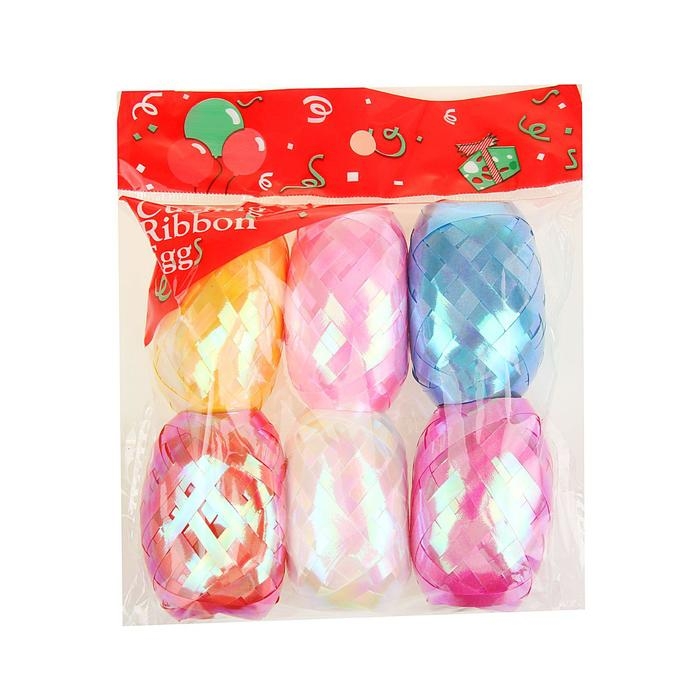 Лента упаковочная перламутровая, ассорти, набор 6 шт., 0,5 см х 10 м