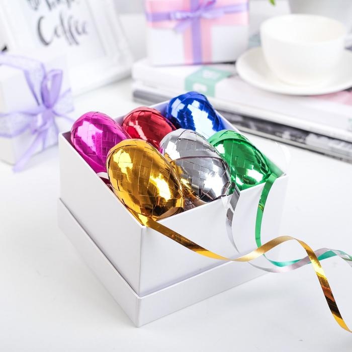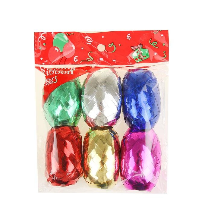 Лента упаковочная металлизированная, ассорти, набор 6 шт., 0,5 см х 10 м
