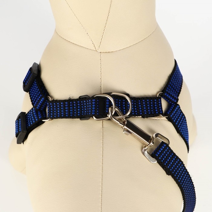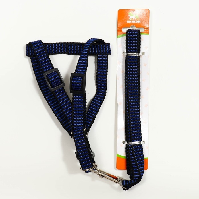 Комплект амуниции рельефный, поводок 120 х 1,5 см, ОГ 36-49 см, сине-чёрный