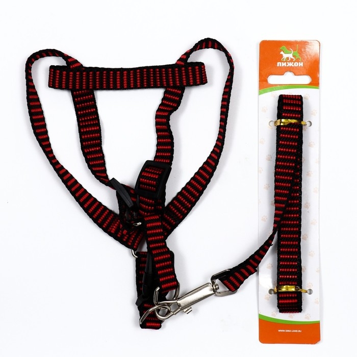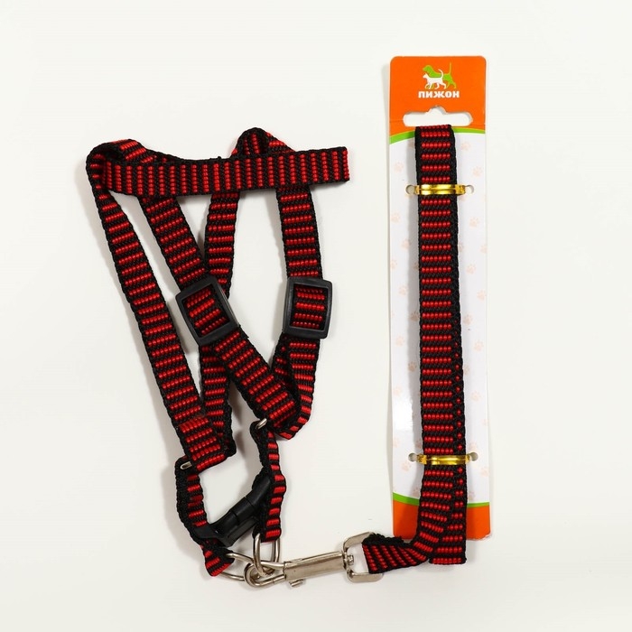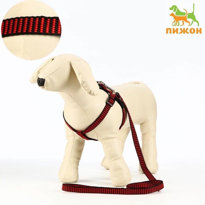 Комплект амуниции рельефный, 1,5 см, шлейка 36-49 см, поводок 120 см, красно-чёрный
