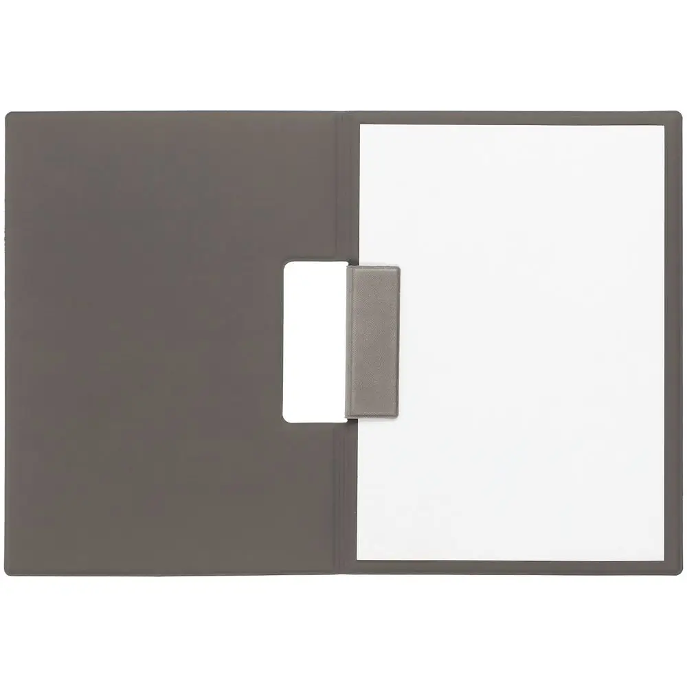 Папку можно использовать в стандартном вертикальном формате или перегнуть обложку и поставить в качестве таблички горизонтально. Магнитный клип удерживает до 10 листов.