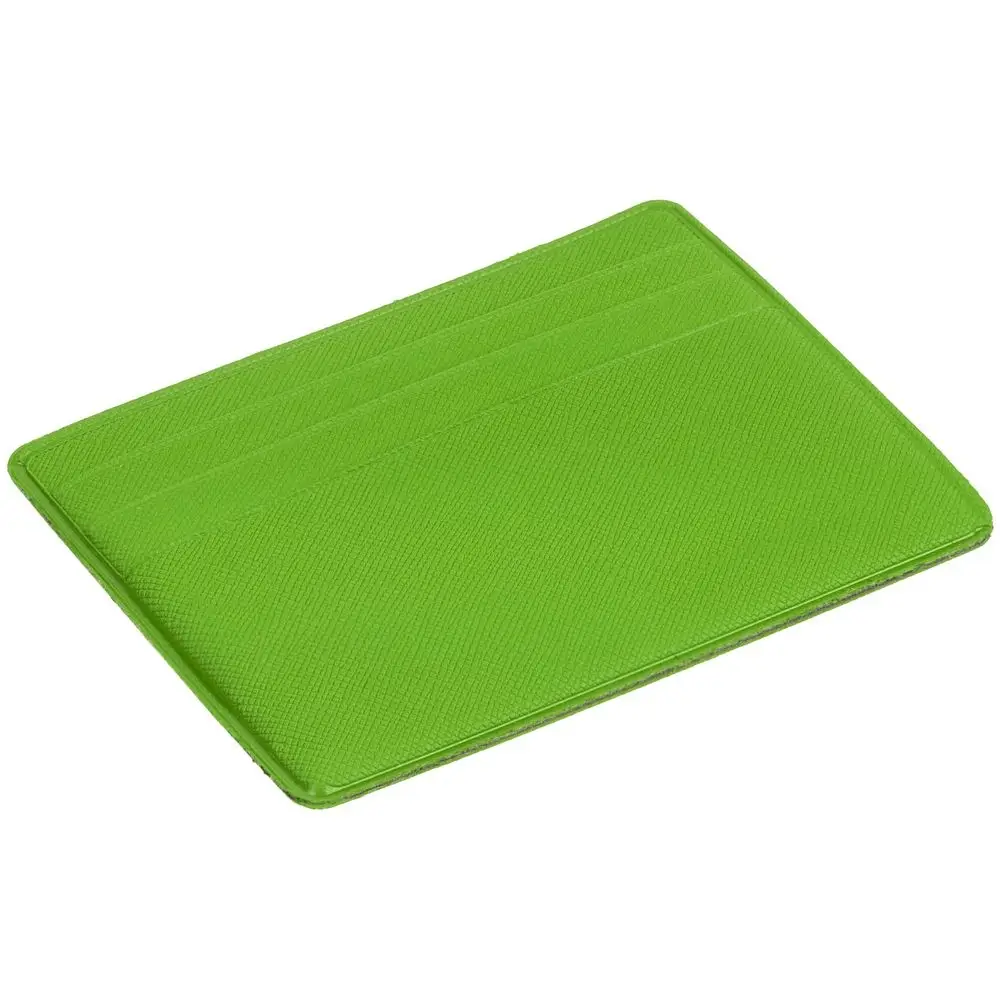 Чехол для карточек из искусственного материала, имитирующего сафьяновую кожу, с шестью отделениями для кредитных карт и одним — для сложенных купюр.