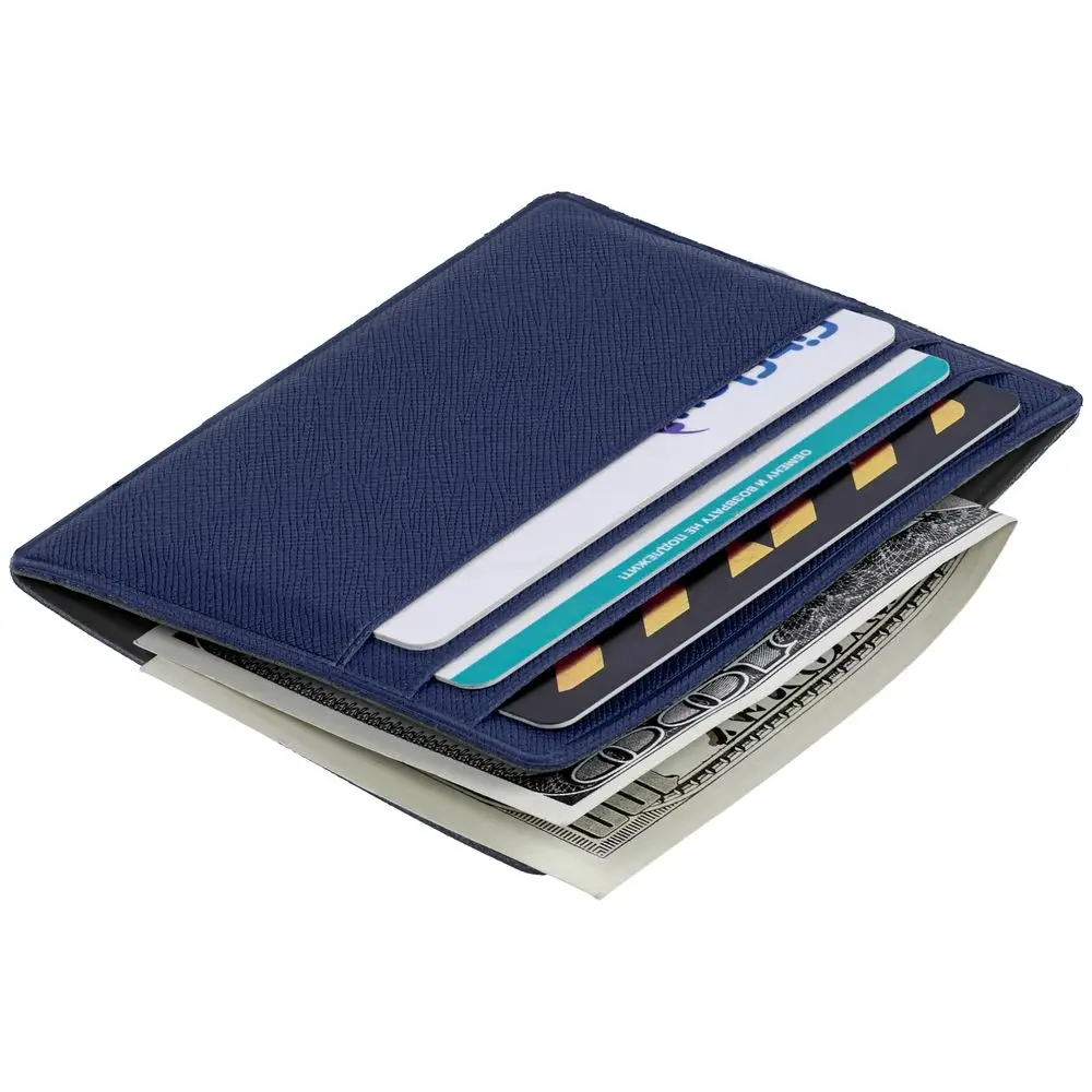 Чехол для карточек из искусственного материала, имитирующего сафьяновую кожу, с шестью отделениями для кредитных карт и одним — для сложенных купюр.