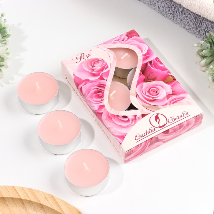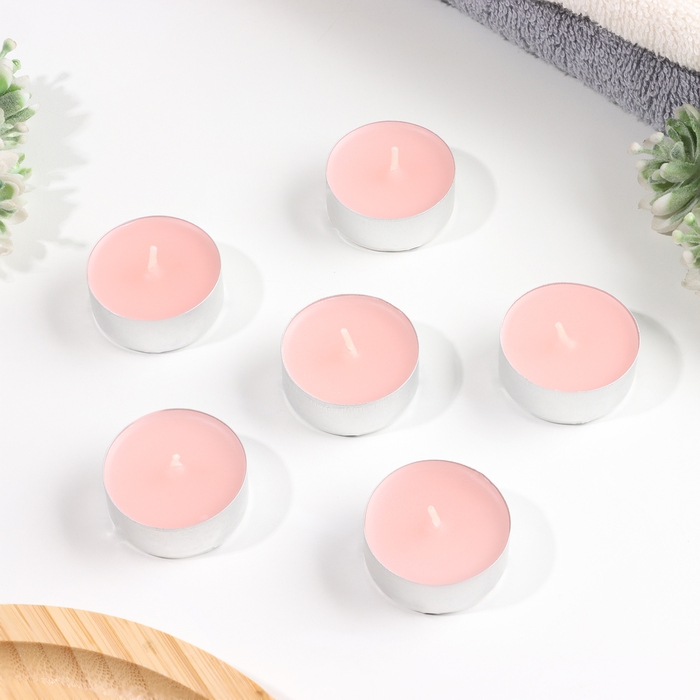 Набор чайных свечей ароматических "Роза", 3,8х1,6 см, 3,5 ч, 12 г, 6 штук