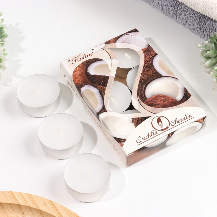 Набор чайных свечей ароматических "Кокос", 3,8х1,6 см, 3,5 ч, 12 г, 6 штук