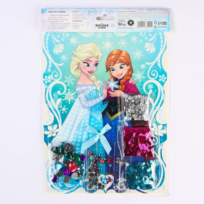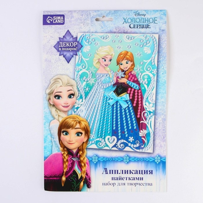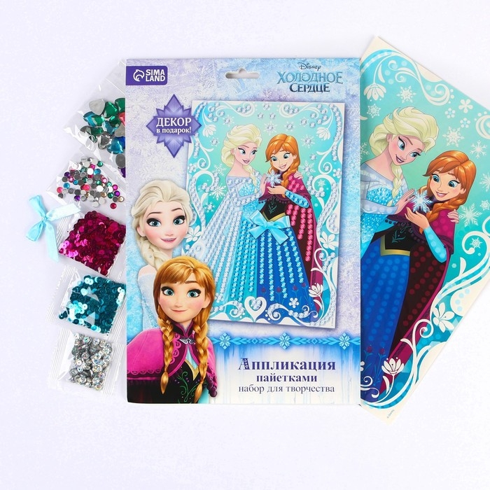 Аппликация пайетками Холодное сердце, 3 цвета пайеток, бантик, А4