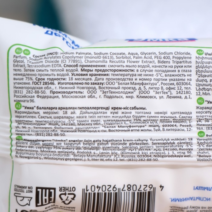 Детское крем-мыло «Умка» идеально подходит для нежной кожи малышей с первых дней жизни. Благодаря экстрактам ромашки и череды, оно бережно ухаживает за кожей, снимает раздражение и воспаление, а также способствует заживлению микроповреждений. Кусковое мыло легко пенится и хорошо смывается водой, оставляя кожу чистой и свежей. Оно не вызывает аллергических реакций и не сушит кожу, поэтому идеально подходит для ежедневного использования. Детское крем-мыло «Умка» — ваш надёжный помощник в уходе за кожей малыша!