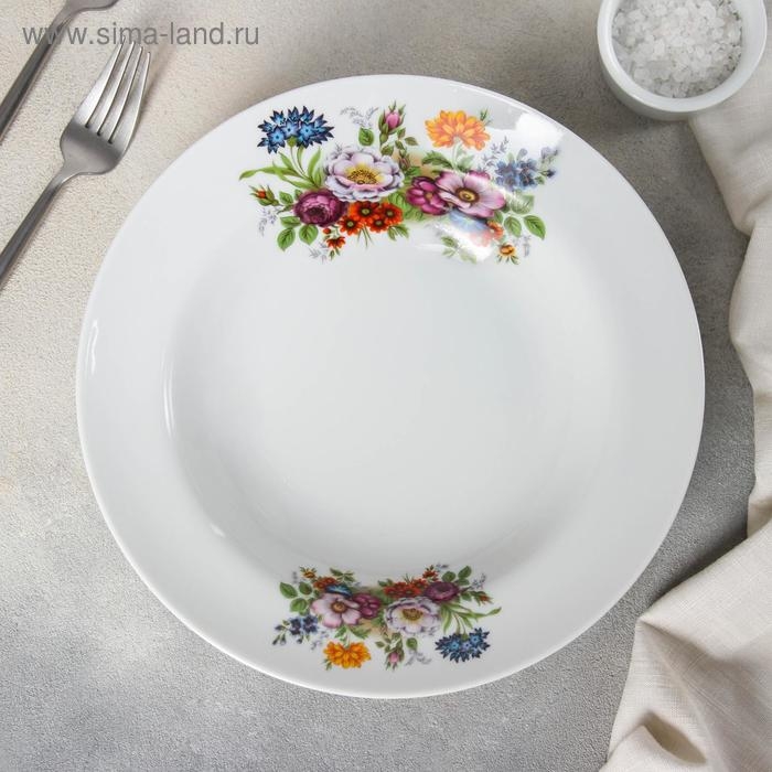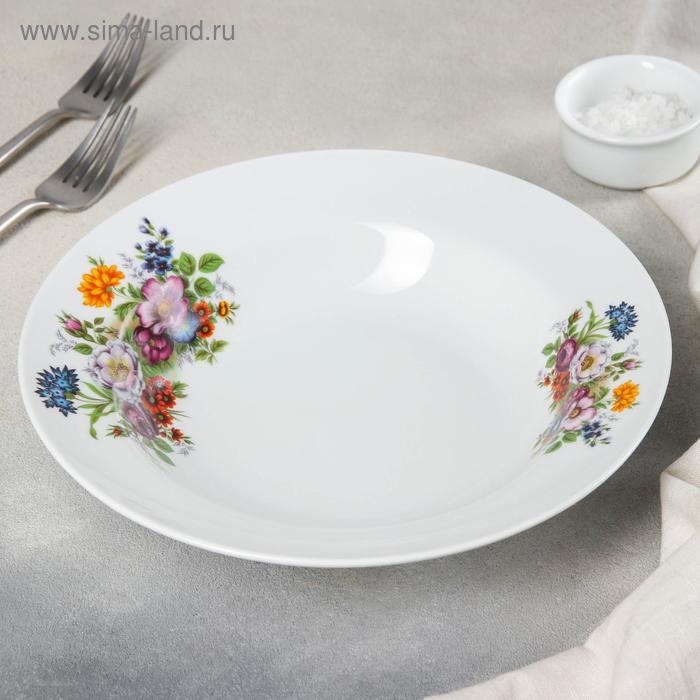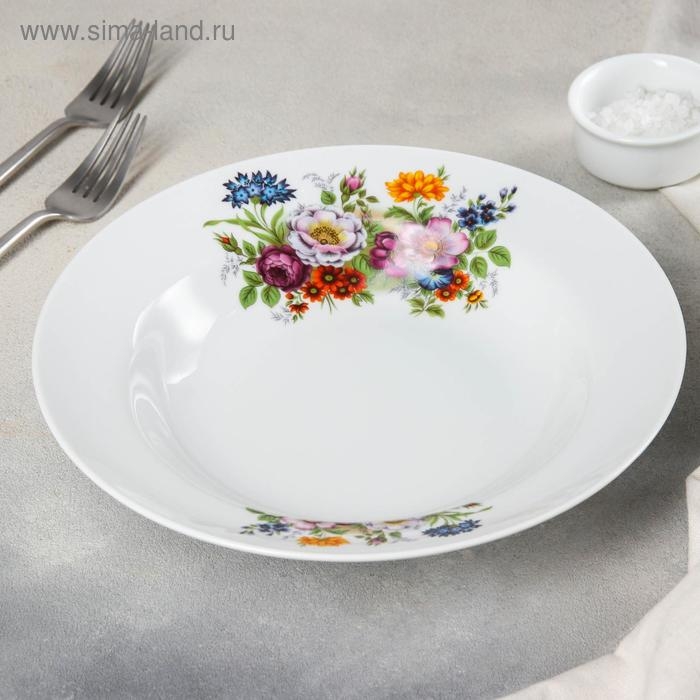 Тарелка фарфоровая глубокая «Букет цветов», 500 мл, d=24 см, цвет белый
