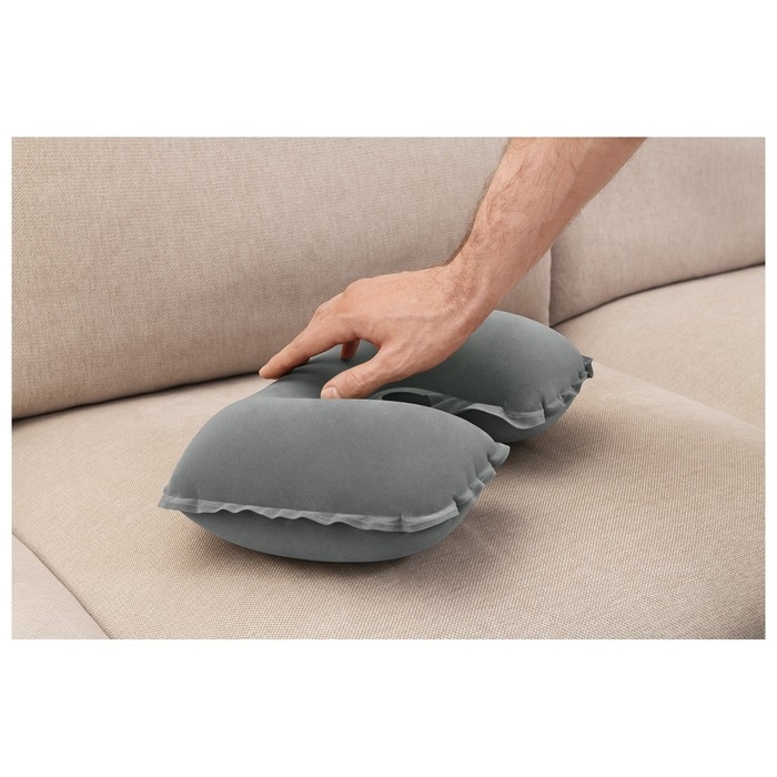 Чтобы во время долгой и утомительной поездки чувствовать себя комфортно, не забудьте захватить с собой компактную надувную подушку. Мягкое велюровое покрытие приятно на ощупь, а классическая расцветка подарит хорошее настроение во время долгого путешествия. Подушка повторяет контуры тела, огибает шею и правильно ложится под голову.