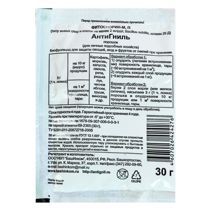 Препарат АнтиГниль Фитоспорин, защищающий растения при хранении урожая, 30 г