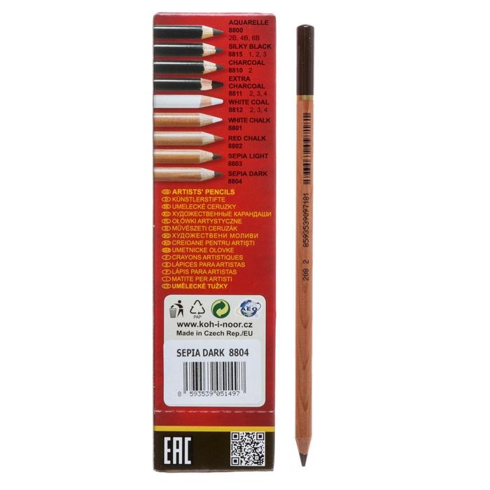 Сепия Koh-I-Noor идеально подойдёт для создания портретов, набросков и эскизов. Применяется при создании работ, стилизованных под старые фотографии. Грифель оставляет яркий выразительный цвет. След мягко ложится на поверхность. Цвета легко смешиваются друг с другом. Карандаш имеет компактную форму. Можно носить в любом пенале.