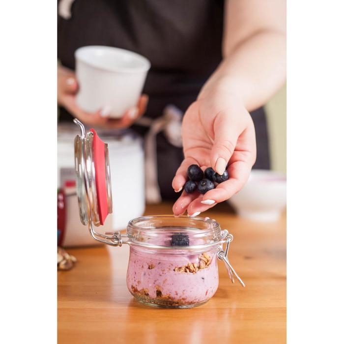 Силиконовая прослойка позволяет крышке плотно прилегать к банке, исключая возможные протекания жидкостей. Удобный металлический замок легко открывается и закрывается.