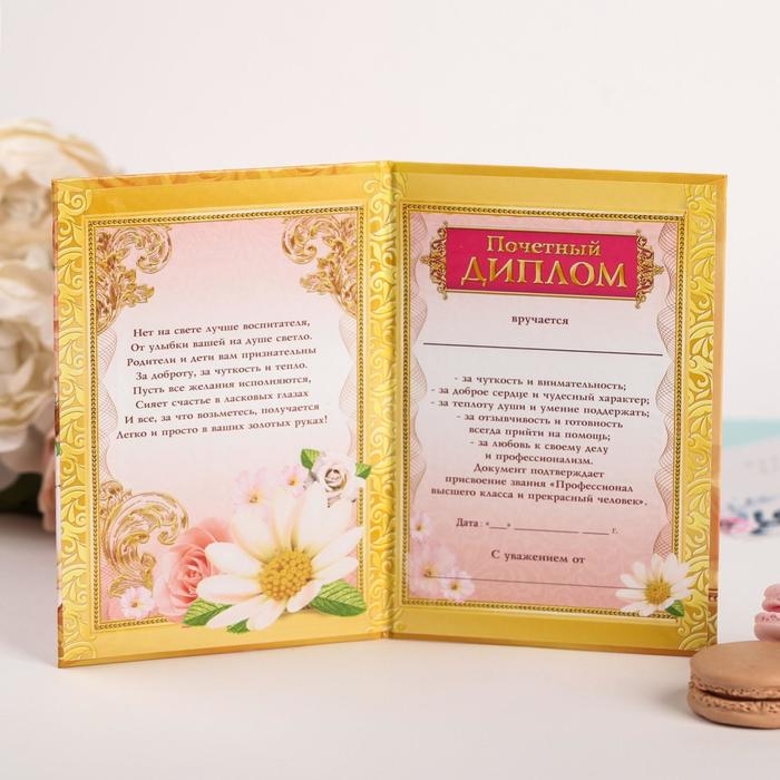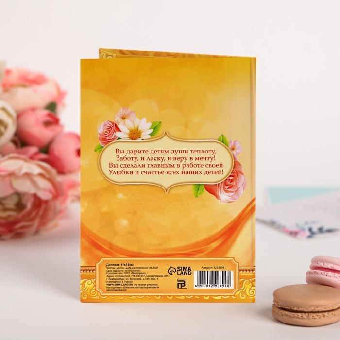 Изделие — отличный вариант для оригинального поздравления. Эффектные красочные изображения, поздравления и тёплые слова в стихотворной форме, поле для имени получателя и перечень причин для вручения делают его незаменимым аксессуаром любого события! Диплом формата А6 изготовлен из плотного картона.