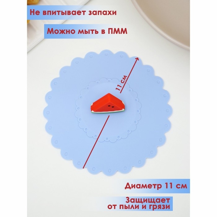 Крышка - непроливайка силиконовая Доляна «Арбуз», d=11 см, цвет васильковый