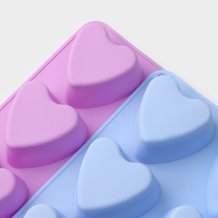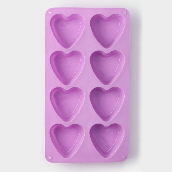 Форма для выпечки Доляна «Сердце», силикон, 31×16 см, 8 ячеек (7×6,8 см), цвет МИКС