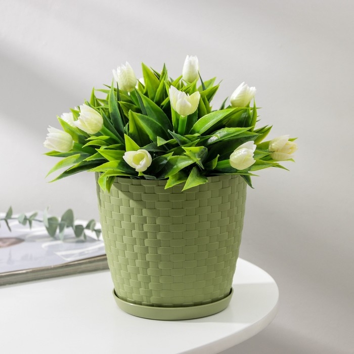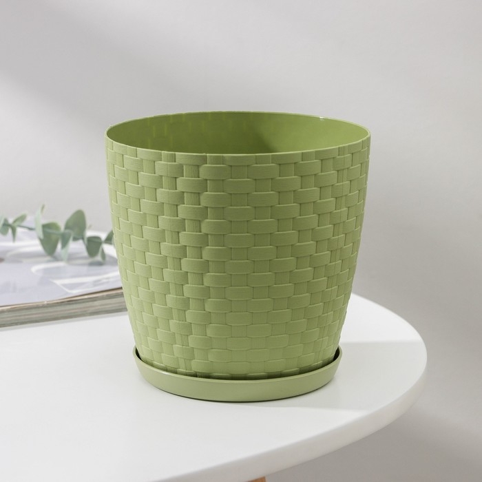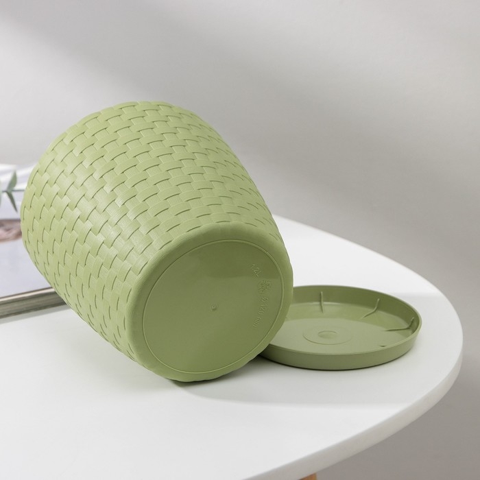 Горшок для цветов с поддоном «Ротанг», 1,2 л, цвет оливковый