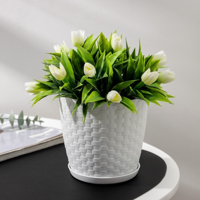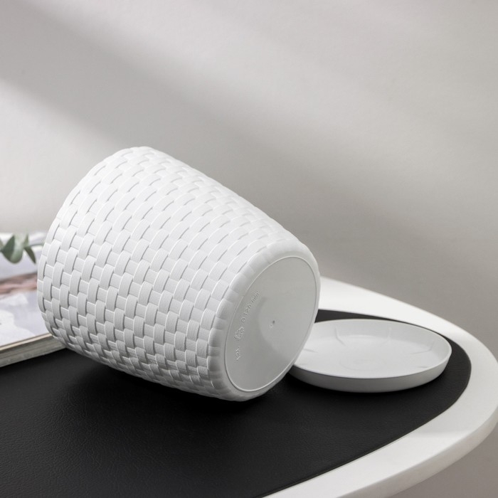 Горшок для цветов с поддоном «Ротанг», 1,2 л, цвет белый