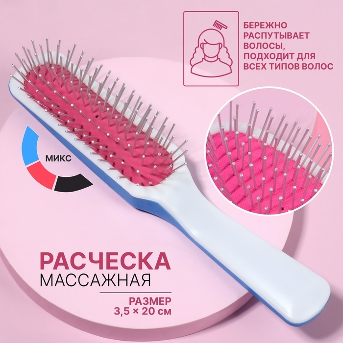 Расчёска массажная, 3,5 × 20 см, цвет МИКС