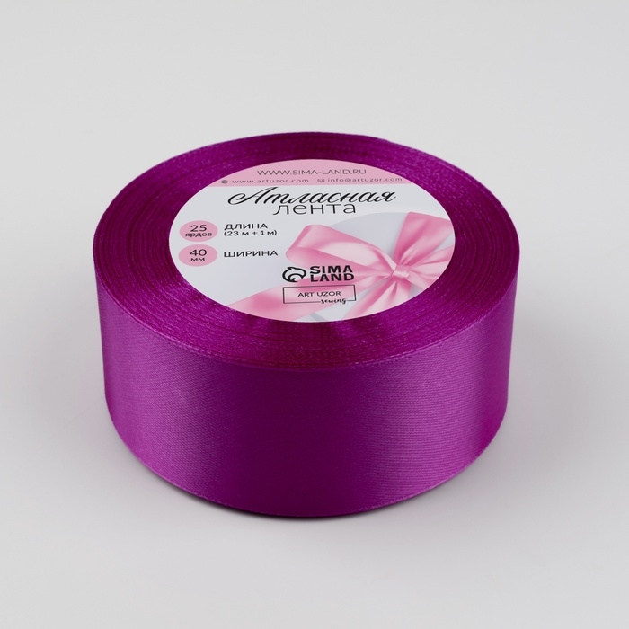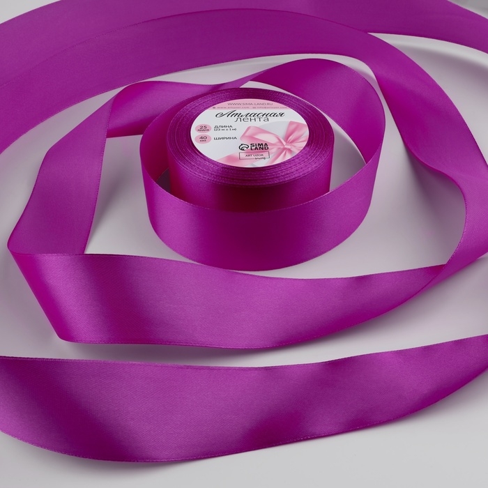 Лента атласная, 40 мм × 23 ± 1 м, цвет фиалковый №255