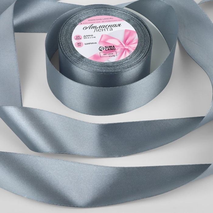 Лента атласная, 40 мм × 23 ± 1 м, цвет серый №03